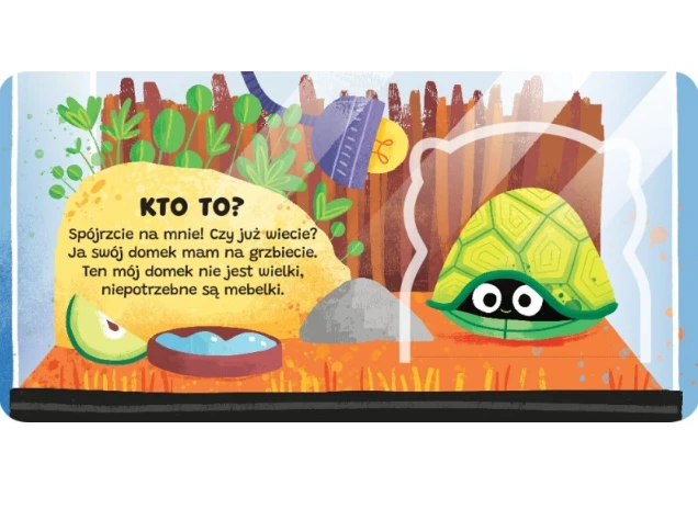 Aktywizująca książeczka dla najmłodszych. Zabawa tą książką polega na otwieraniu okienek, w których kryją się zwierzęta: kotek, myszka, piesek, żółw, papuga. Na każdej rozkładówce znajduje się zabawny wierszyk, który podpowiada, jakiego zwierzątka szukamy – wierszowany tekst łatwo zapada w pamięć i po kilku dniach zabawy dziecko będzie znało wierszyki, dzięki czemu ćwiczy pamięć i wzbogaca swoje słownictwo. Książeczka z okienkami to doskonała zabawa dla każdego dziecka.