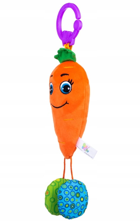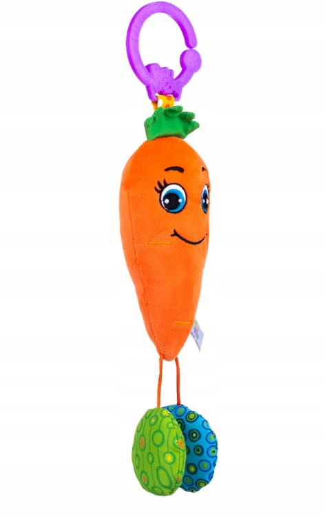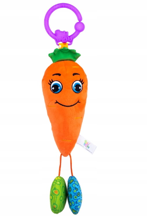 Do rodzinki Pluszaków Luzaków dołączyły owoce i warzywa! Zabawna Marcheweczka wesoło dzwoni zachęcając maluchy do zabawy. Zawieszka wykonana jest z materiałów o zróżnicowanej fakturze, przez co stymuluje zmysł dotyku dziecka. Zabawka posiada piszczałkę oraz szeleszczące elementy. Praktyczny uchwyt umożliwi przymocowanie jej w dowolnym miejscu.