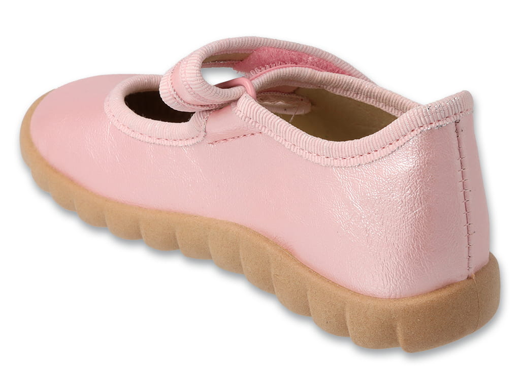 Te piękne buciki z modelu Flexi, to doskonały wybór nie tylko dla dziewczynek stawiających pierwsze kroki, które potrzebują w tym czasie stabilnego obuwia z elastyczną podeszwą. Zapięcie na rzep pozwala na bardzo dobre dopasowanie do stopy, a szeroki czubek na pełną swobodę ruchów. Buty wykonane są z lekkich, przewiewnych materiałów, które nie obciążają stopy dziecka. Minimalistyczny design sprawia, że są stylowe, a motyw misia dodaje im uroku. Wspaniale sprawdzą się zarówno do codziennych, jak i eleganckich stylizacji.