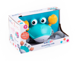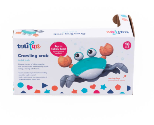 Spróbuj go dogonić! Krabik sprawnie przebiera odnóżami, poruszając się na boki w realistyczny sposób. Możesz się z nim bawić na dwa sposoby. W pierwszym trybie zabawka porusza się bez muzyki, a w drugim, chodzi przy dźwiękach melodii. Za uruchomienie wybranego trybu odpowiada przełącznik, umieszczony na boku kraba.