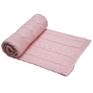 Dizajnerski koc o ciekawym splocie warkocza. Doskonały do wózka i łóżeczka.