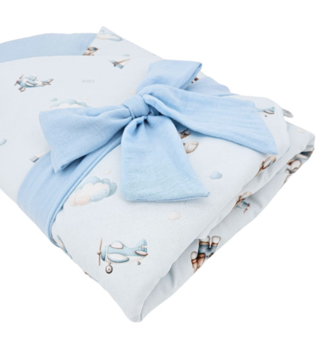 ⭐ Naturalne materiały – zewnętrzna warstwa wykonana ze 100% bawełny, a wnętrze z miękkiego i przewiewnego muślinu, który delikatnie otula skórę dziecka.