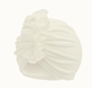 Czapeczka dla dziewczynki typu „turban”, wykonana z dzianiny bawełnianej.