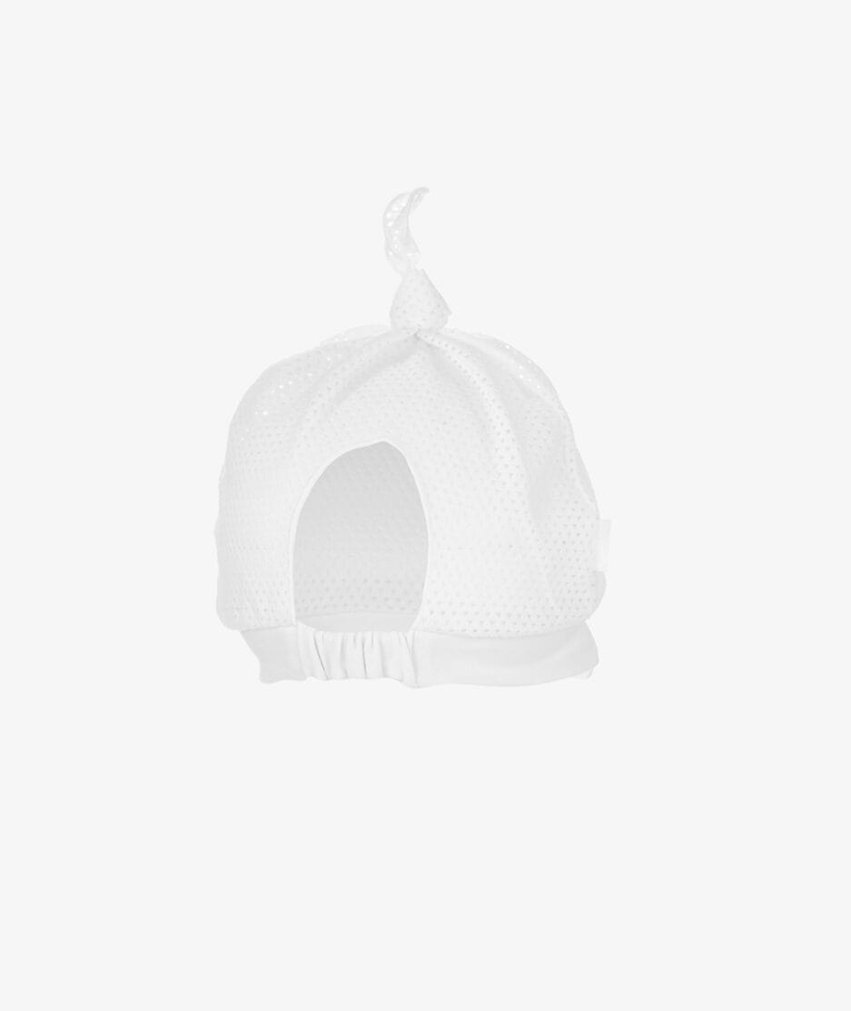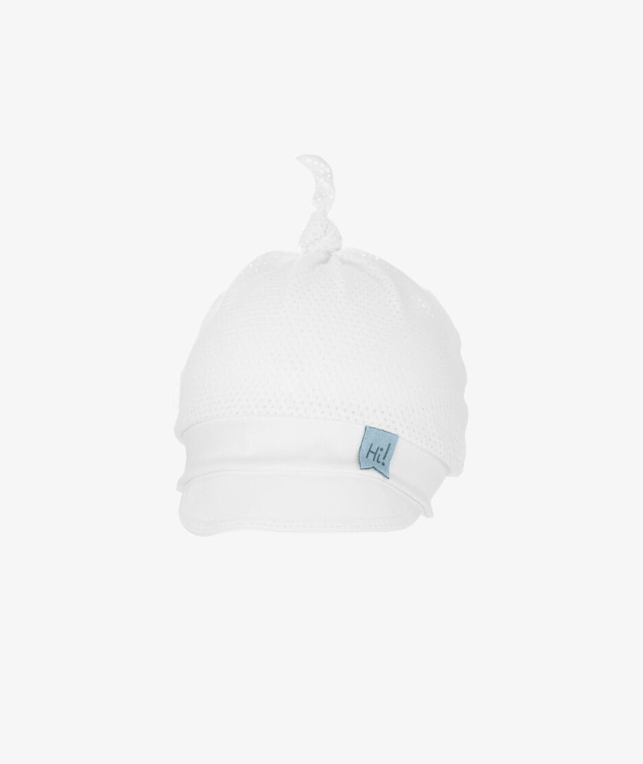 Bawełniana, letnia chusteczka z daszkiem. Z przewiewnego materiału w dziurki oraz bawełnianego singla. Wiązana u góry na supełek. Z kolekcji ILTOM Lato 2021