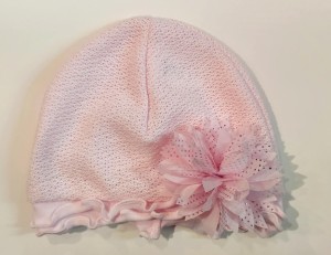 Dziewczęca smerfetka w kolorze różowym z uroczym kwiatem na boku.