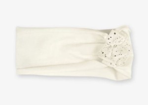 Opaska dla dziewczynki typu „turban”, wykonana z dzianiny bawełnianej. Grafika na marszczeniach wykonana z błyszczącej foli ozdobnej. Z kolekcji ILTOM Wiosna 2020
