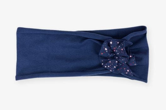 Opaska dla dziewczynki typu „turban”, wykonana z dzianiny bawełnianej. Grafika na marszczeniach wykonana z błyszczącej foli ozdobnej. Z kolekcji ILTOM Wiosna 2020