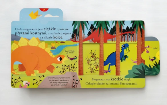Kartonowa książeczka pod tytułem Stegozaur. Poznajemy dinozaury. Akademia mądrego dziecka to kolejna pozycja z serii o wielkich, prehistorycznych gadach.