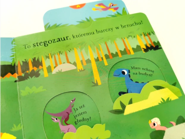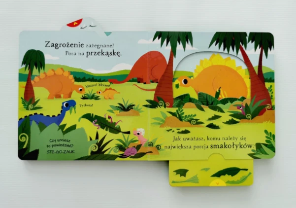 Kartonowa książeczka pod tytułem Stegozaur. Poznajemy dinozaury. Akademia mądrego dziecka to kolejna pozycja z serii o wielkich, prehistorycznych gadach. Na każdej, kolorowej stronie mały czytelnik znajdzie interesujące fakty i ciekawostki z życia dinozaurów. Tym razem przyglądamy się wielkiemu Stegozaurowi, któremu burczy w brzuszku. Czym można go nakarmić, co w tamtych czasach jadł ten wielki gad? Przeglądając kartonowe strony dowiemy się jak ten potężny zwierz był zbudowany, jak bronił się przed innymi drapieżnikami i czy na prawda, że miał na ogonie kolce? Dodatkowo na każdej stronie mamy ruchomy element, co sprawia, że czytanie jest też świetną zabawą pozwalającą ćwiczyć paluszki maluszkom.