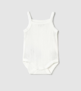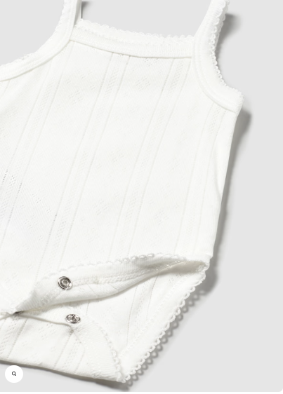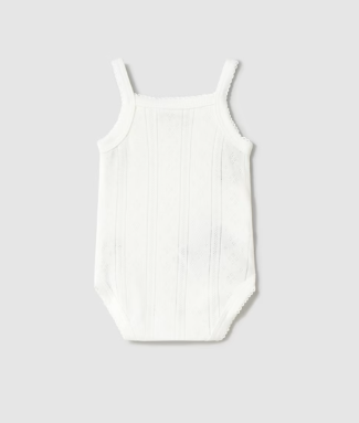 Przewiewne body na ramiączka. Kwadratowe wycięcie pod szyją , cienkie ramiączka, zapięcie w kroku na zatrzaski oraz ażurowa dzianinka to komfort na upalne dni dla Twojego Maluszka.