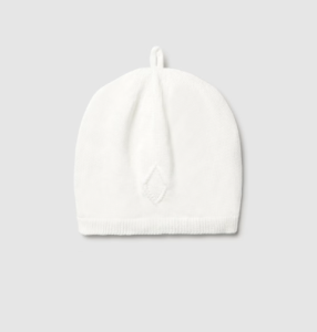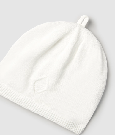Urocza, miękka i przyjemna w dotyku czapeczka bez wiązania w kolorze śmietankowym.