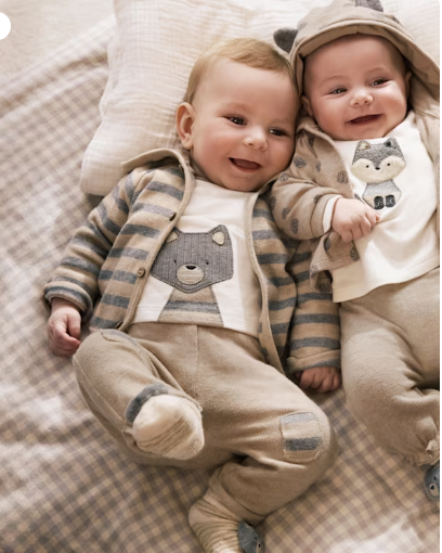 Dres dla noworodka składający się z trzech elementów: bluzy, długich sportowych spodni i pasującej koszulki.