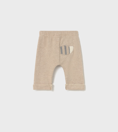 Długie spodnie sportowe dla noworodka zapewniające maksymalny komfort. Elastyczny pas regulowany sznurkiem. Ozdoby: ozdobna aplikacja, haft.