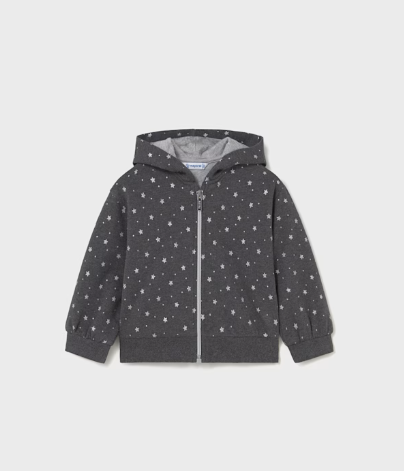 Bluza dla niemowlęcia. Kołnierz z kapturem. Zapięcie na środku na zamek błyskawiczny.