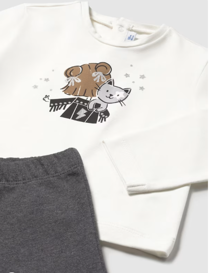 Dres dla niemowlęcia składający się z trzech elementów: bluzy, długich sportowych spodni i pasującej koszulki.