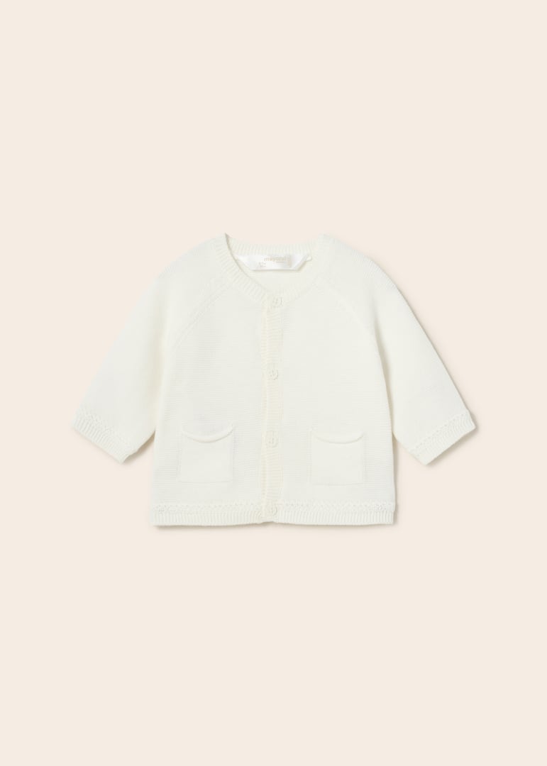 Ubranko ECOFRIENDS 100% zrównoważona bawełna. Kardigan z długim rękawem dla noworodka. Zapięcie z przodu na guziki. Z przodu funkcjonalne kieszenie.
