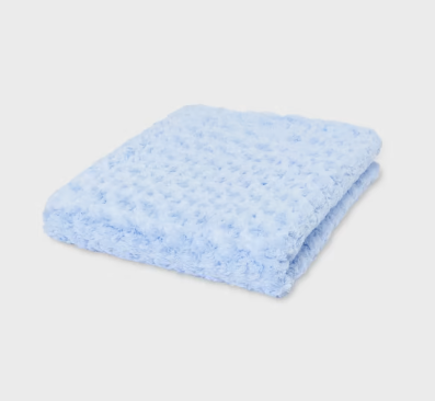 Mięciutki kocyk we wzór układający się w różyczki w modnym kolorze beżowym. Delikatnie otuli Twojego Maluszka.