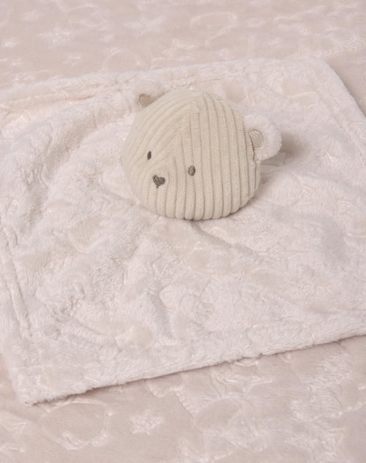 Ciepły dziecięcy kocyk, delikatny w dotyku, który będzie zapewniał ciepło Twojemu dziecku w chwilach odpoczynku. Ozdoby: haft.