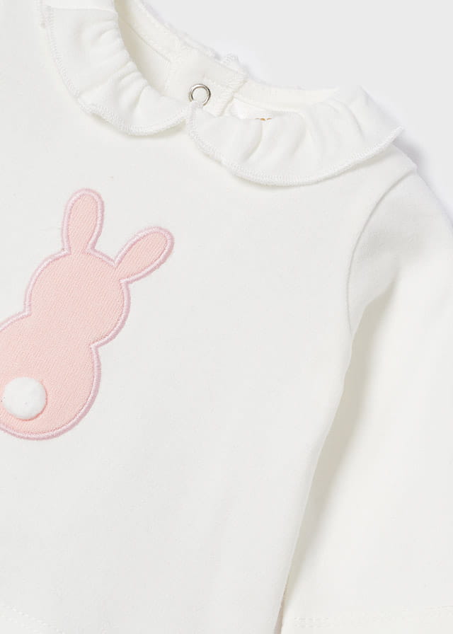 Koszulka z długim rękawem dla noworodka. Zapięcie na małe zatrzaski na plecach, które ułatwiają założenie ubranka.