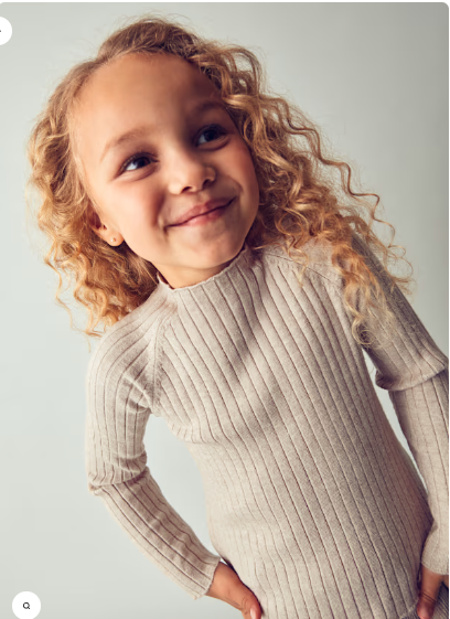 Półgolf dla dziewczynki wykonany z prążkowanej, mięciutkiej i delikatnej dzianiny w kolorze beżowym.