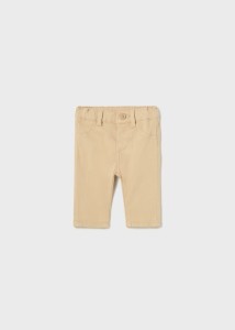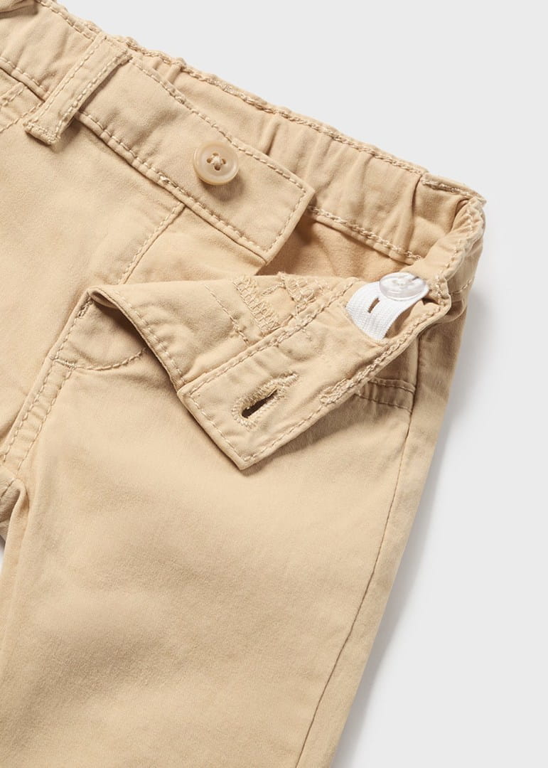 Spodnie typu chino dla noworodka o bardziej dopasowanych nogawkach, służących podkreśleniu sylwetki przy jednoczesnym zachowaniu elegancji. Regulowana gumka w pasie dla lepszego dopasowania. Wygodna i trwała tkanina z serży. Funkcjonalne kieszenie zarówno z przodu jak i z tyłu ubranka. Ozdoby: detale ze ściegu stębnowego.