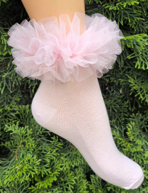 Urocze dziewczęce skarpetki z tiulową falbanką przy kostce. Znakomite wykończenie każdej stylizacji.