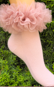Urocze dziewczęce skarpetki z tiulową falbanką przy kostce. Znakomite wykończenie każdej stylizacji.