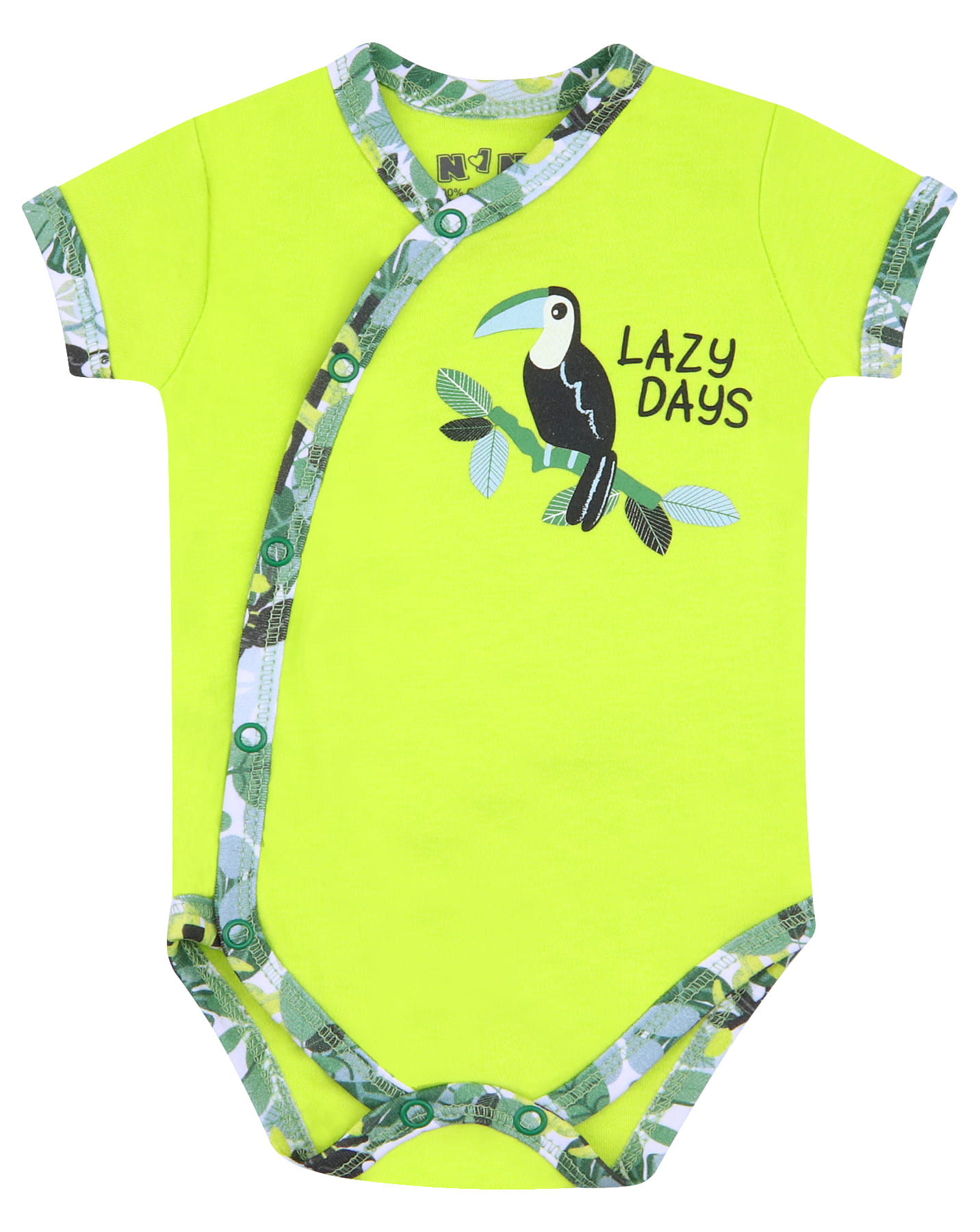 Pistacjowe body niemowlęce TUKAN z bawełny organicznej dla chłopca, bardzo wytrzymałe i miłe w dotyku. Ubrania z ekologicznej bawełny nie uczulają, ponieważ do ich produkcji nie stosuje się silnych środków chemicznych, dlatego są idealne dla delikatnej skóry nowo narodzonych maluszków. Kopertowe zapinanie pomaga w codziennej pielęgnacji naszego maleństwa. Bielizna niemowlęca najwyższej jakości uszyta w Polsce.