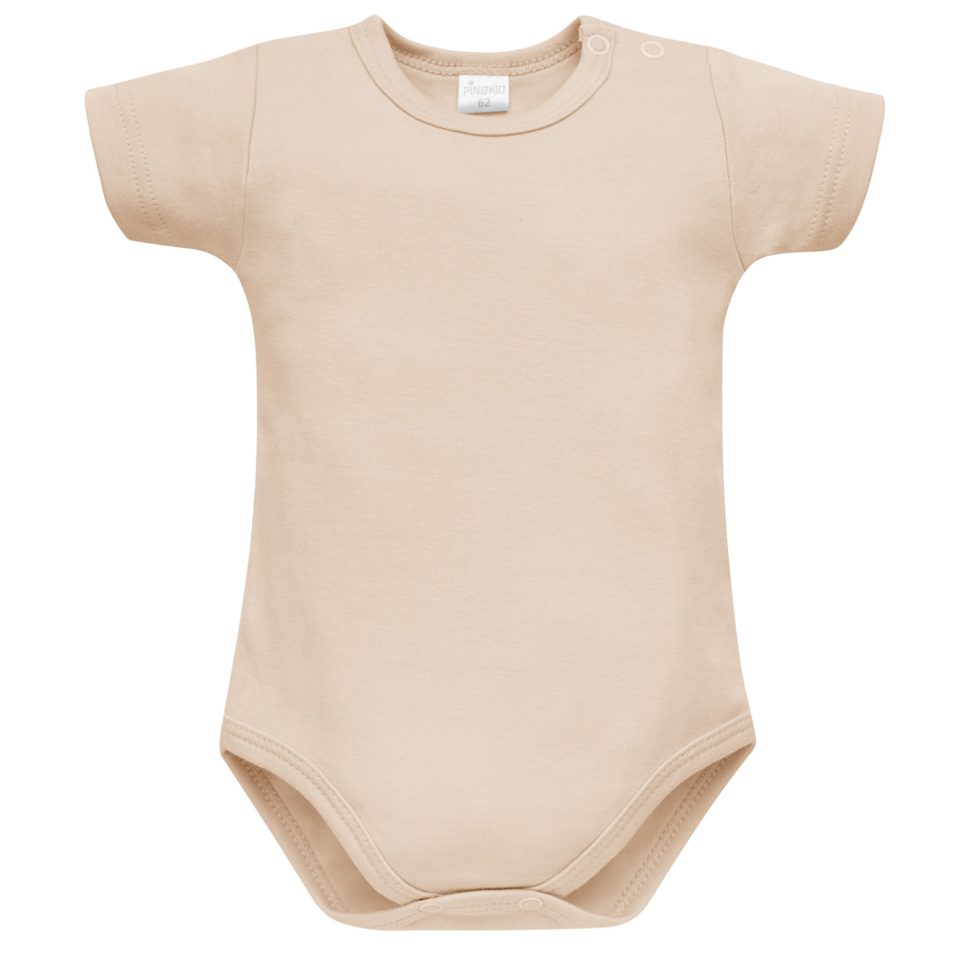 Body niemowlęce przez głowę z krótkim rękawem, uszyte ze 100% mięciutkiej bawełny w kolorze beżowym. Na jednym ramieniu znajduje się zapięcie na dwie napki Taki rodzaj zapięcia zapewnia komfort podczas ubierania maluszka. To bardzo wygodne rozwiązanie i must have niemowlęcej wyprawki. Z tej kolekcji mamy również śpiochy, półśpiochy, kaftanik, pajac oraz pasującą czapeczkę.