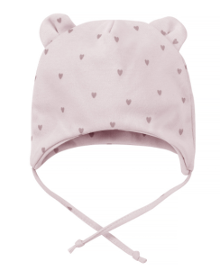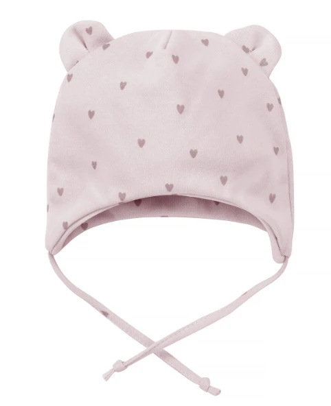 Czapeczka wiązana z uroczymi uszkami, uszyta z 100% podwójnej bawełny.