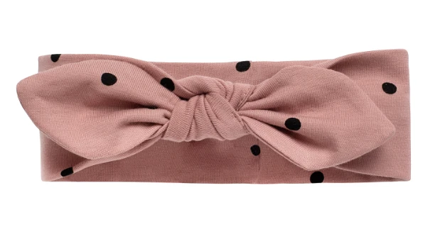 Urocza różowa opaska w czarne groszki doskonale uzupełniająca kolekcję Tres Bien.