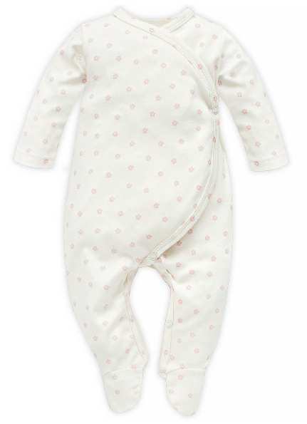 Wygodny pajac z wysokiej jakości bawełny ecru w różowe kwiatki.