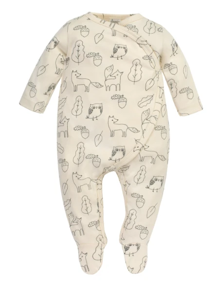 Wygodny pajac z wysokiej jakości bawełny w kolorze ecru z printem w liski.