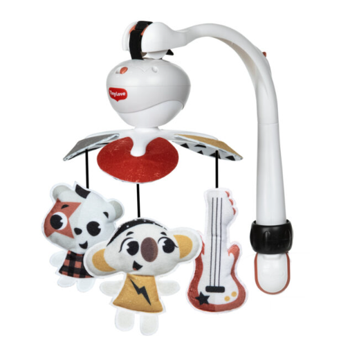 Karuzela Tiny Rockers oferuje pięć różnorodnych melodii, które odtwarzają się przez okres 30 minut. Dzięki muzyce zapewnia się: