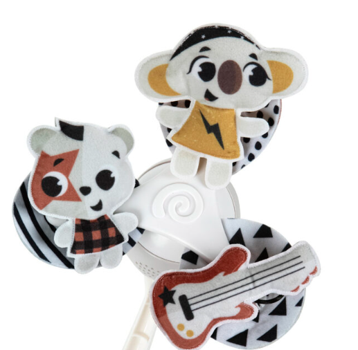W pierwszych miesiącach życia istotne jest pobudzanie dziecięcych zmysłów. Karuzela Tiny Rockers oferuje zintegrowane elementy dźwiękowe oraz wizualne, które przyciągają uwagę dziecka. Dzięki tej stymulacji rozwijają się podstawowe umiejętności wzrokowe i słuchowe.
