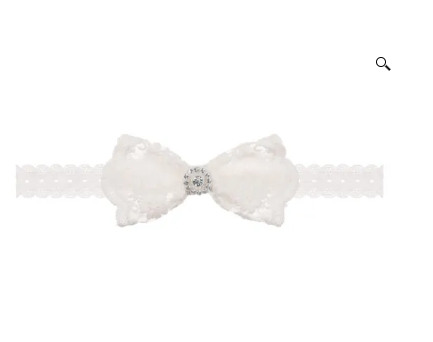 Opaska do chrztu w kolorze ecru ozdobiona ecru koronkową kokardką z cyrkoniami w środku.